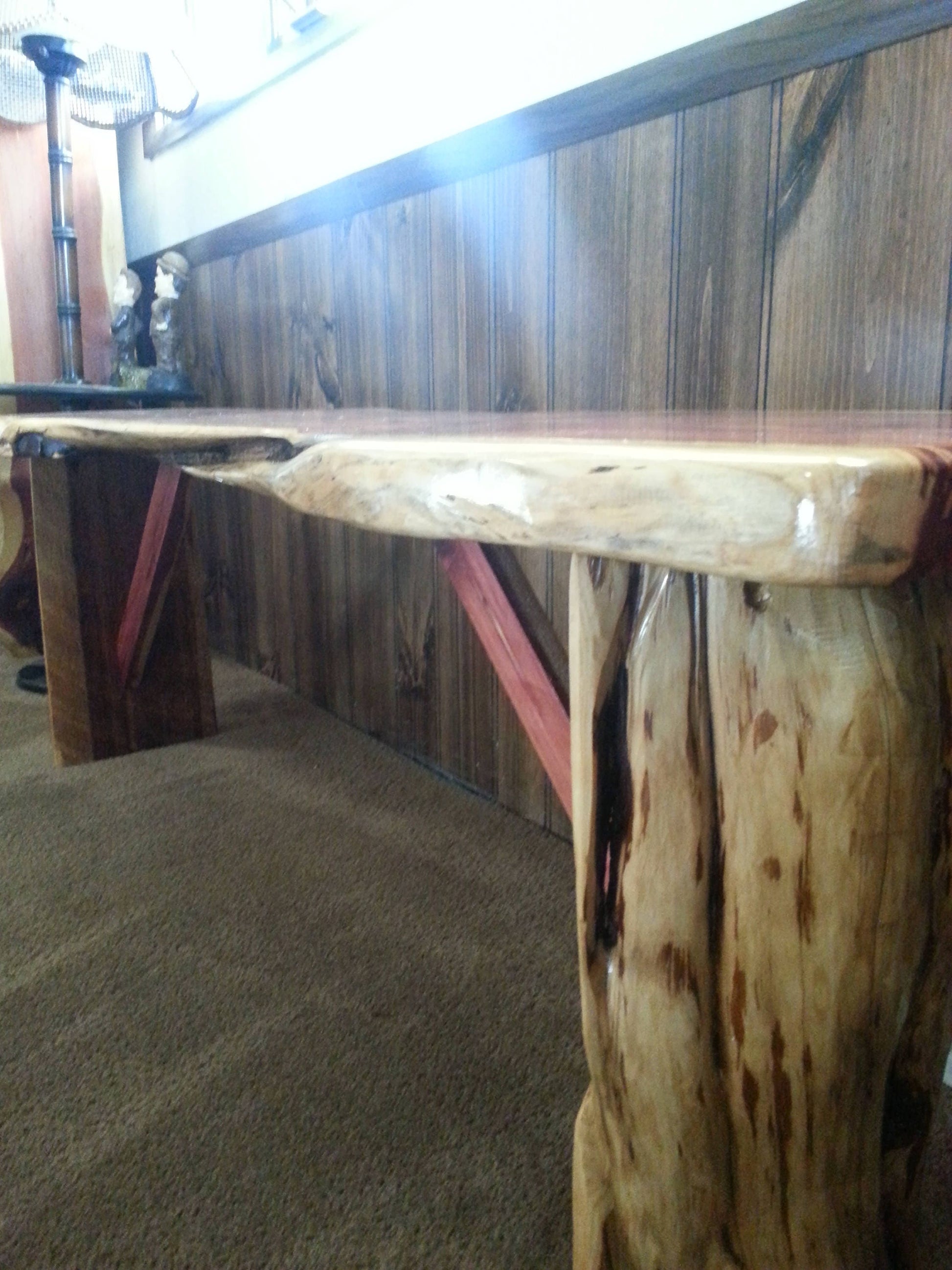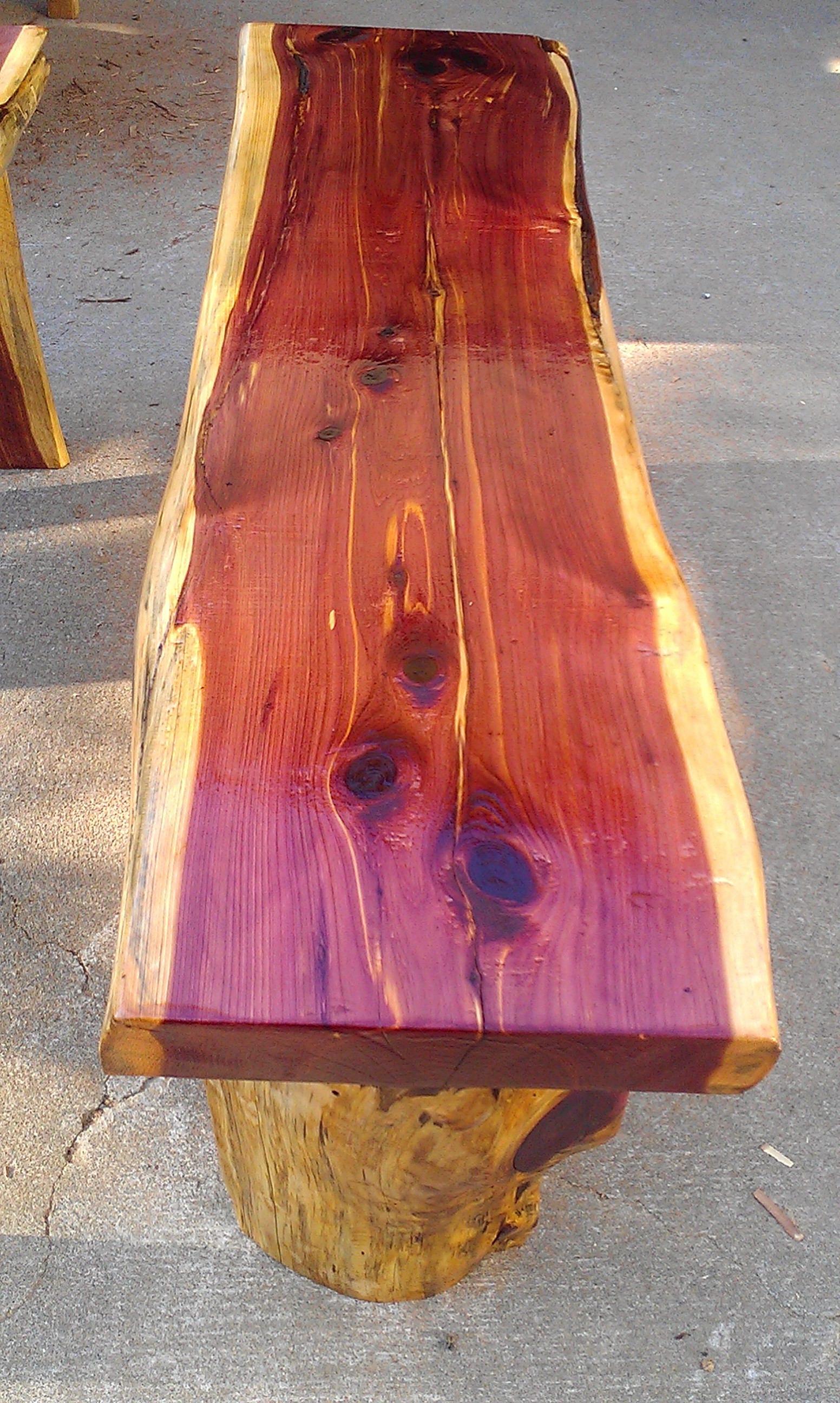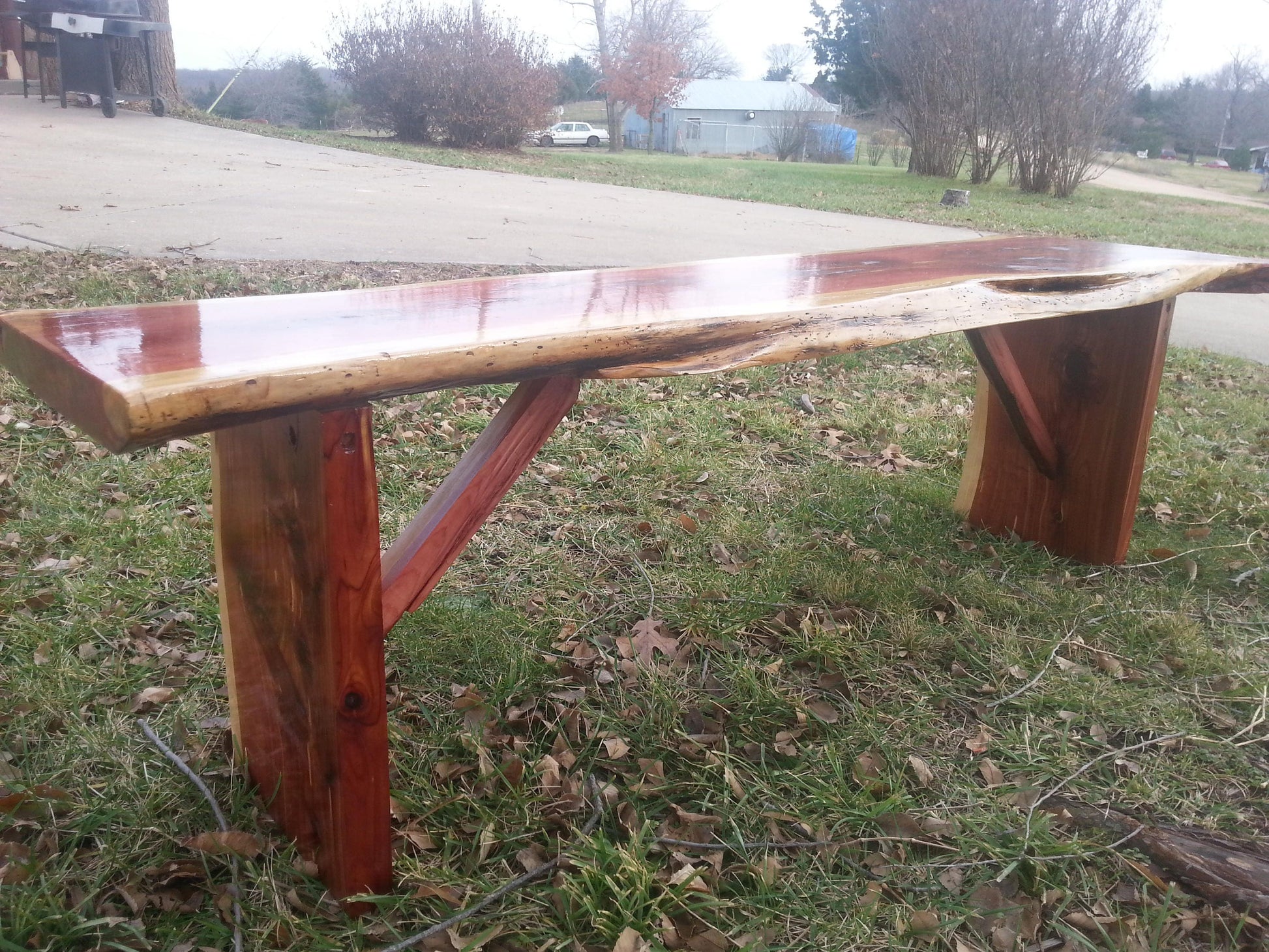 Hand Crafted Cedar Bench with the dual live edge is hand-crafted and made with locally harvested eastern red cedar. Our benches are created in three different sizes to meet your needs. We offer 3', 4', and 5' long benches that are perfect for indoor and outdoor gardens or on the front porch. One thing is guaranteed, no two benches will ever be alike. All our benches are custom designed, created, and made to order.